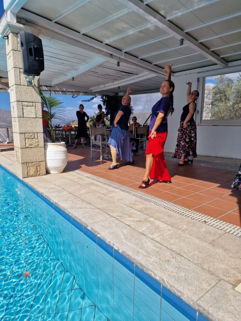 W ubiegłych latach poprowadziła warsztaty taneczne na Krecie wraz z pokazem w kreteńskiej górskiej miejscowości Spili.